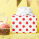 Um papel de embalagem construído com um padrão de bolinhas vermelho com uma distância média entre os pontos sobre um fundo branco. Personalize o fundo branco entre outras opções.