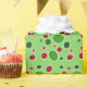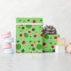 Bolinhas verdes, vermelhas e brancas em papel de embalagem de Natal.