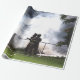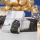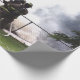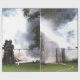 Papel de embrulho com uma fotografia de bombeiros a combater um incêndio.