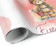 Urso de pelúcia bonitinho vestido com uniforme de bombeiro vermelho com texto de "Homem-Bebê". Fundo de aquarela vermelha. Repetir a quebra de presente padrão. Perfeito para todos os presentes de chá do seu filho bombeiro. O papel de embrulho perfeito para o chá de fraldas é simples e doce.