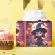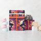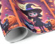Este papel de embrulho apresenta uma bruxa bonita em uma fantasia negra com gatos e abóboras na noite de Halloween. Papel de embrulho divertido para presentes de Halloween!