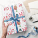 Papais noeis de Ho Bonito Snowman Reindeer Feriados de Natal O Papel de Envolvimento apresenta o texto "Ho Ho Ho" na tipografia moderna, acentuado com Papais noeis, homens de neve, renas, decorações e flocos de neve. Projetado por feriados do Evco www.zazzle.com/store/evcoholidays