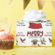 O padrão repetido neste belo papel de embrulho de Natal é uma imagem de um adorável cão Pug a espreitar de um saco de presentes de Natal. Atrás dele está um sorvedouro de bagas sagradas e vermelhas. Um pássaro toucinho vermelho e preto está prestes a pousar. O texto da xadrez de búfalos vermelho e preto estilizado diz MERRY CHRISTMAS", e "Feliz ano novo" está em verde-escuro. Sua própria assinatura está em dois campos para você personalizar. Certifique-se de ver as etiquetas de presentes correspondentes.