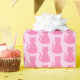 Este incrível papel de embrulho apresenta uma imagem de arte digital de um bonito gato rosa com uma cauda encaracolada. Seus olhos são cor-de-rosa pálido com pupilas pretas e ela tem pestanas pretas longas. Ela está vestindo um arco rosa no cabelo e um lindo colar de pérolas ao redor do pescoço. A design é perfeita para celebrar uma menina. O presente perfeito para um chá de fraldas ou uma menina nova.