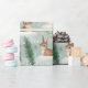 Um design festivo bonito com boneco de neve e veado em uma cena de neve. Bonito pastéis. Embalagem de presente de Natal verde com um padrão perfeito. Perfeito para embrulhar presentes, artesanato, raspagem e muito mais.