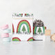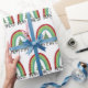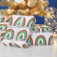 Bons arco-íris de festas de tipografia "Feliz e Brilho", feitos de árvores de Natal e cores de festas do arco-íris. Luzes de Natal e cores sazonais festivas de vermelho e verde.