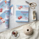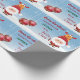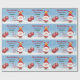 Bonita, engraçada e elegante papel de embrulho de Natal com Papais noeis em sua fantasia vermelha (segurando uma cana doce) e sua rena favorita, Rudolph, atrás dele. O texto diz "Feliz Natal! Este presente é para Jayden do Papai Noel" — certifique-se de personalizar o nome do garoto. Você também pode mudar a saudação, se quiser. O guincho inclui também duas bolhas vermelhas com flocos de neve, e uma paisagem nevada.