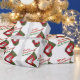 Este doce papel de embrulho de Natal personalizado apresenta uma fotografia de uma meia vermelha e verde com um adorável boneco de neve vestido com um lenço de xadrez sazonal e um chapéu colocado sobre um fundo branco. Preencha o campo modelo com seu nome, remova esse texto ou clique em Personalizar para selecionar um estilo de fonte, tamanho e cor desejados. Você pode limpar o texto de Feliz Natal vermelho adicionado ao plano de fundo e clicar em Personalizar para adicionar texto preferido