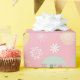 Este adorável papel de plástico de presente de Natal é tão fofo e seguro de agradar aos seus pequeninos nesta temporada de festas. A design apresenta um fundo cor-de-rosa com vinhetas de pinguins doces e bonecos de neve com flocos de neve e presentes.