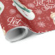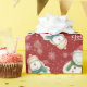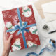 Dois bonitinhos bonitinhos de neve estão nesta maldita folha de papel de embrulho de Natal. Um adorável boneco de neve tem o chapéu de Papai Noel enquanto o outro está preso no chapéu de atirador. Flocos de neve brancos e neve completam o padrão de feriado.