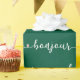 Bonjour Tiled Design Wrapping Paper. with customizable background color. White letters show up best on darker colors. The word "Bonjour" is a French greeting that literally means "good day," and it is used to say hello, good morning, or good afternoon. It is a versatile and respectful greeting suitable for both formal and informal situations, and functions as a universal "hello" and is considered polite to say to anyone you encounter, from a shopkeeper to a friend. Use in the morning until roughly 5 or 6 PM, after which the greeting "bonsoir" (good evening) is more appropriate.