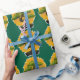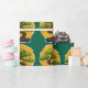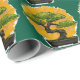 Uma bela ilustração de uma árvore bonsai que se senta num pote preto contra um fundo circular amarelo brilhante.