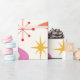 Este é um elegante boomerang meio século colorido moderno, cor-de-rosa, amarelo, vermelho e laranja, com o padrão de estrelas atômicas. É papel de embrulho de presente de excelente para qualquer pessoa que ame designs da idade retroatômica da safra