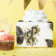 Papel De Presente Borboleta Flor Dourada com Orquídea Preta