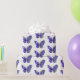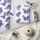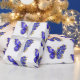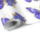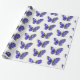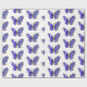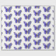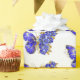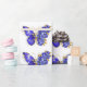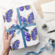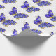 Borboleta de flores cinza, azul, safira, espumante com asa decorada com flores preciosos azuis com folhas de ouro sobre fundo branco.