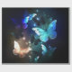 Fabulosa, brilhante, azul e amarela, borboleta noturna sobre fundo escuro.