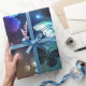 Fabulosa, brilhante, azul e amarela, borboleta noturna sobre fundo escuro.