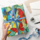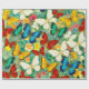 Um padrão vibrante mostra numerosas borboletas em várias cores, em meio a flores e vinhas, criando um design alegre e vivo. Um design excelente para aquele amante da borboleta na sua vida!