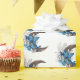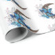 Borboletas morfosas azuis com asas detalhadas sentam-se sobre a crista de madeira decorada com plantas selvagens sobre fundo branco. Borboletas azuis morfo.