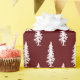 Dê um pouco de alegria de feriado no estilo moderno com esta mão desenhada parecendo burgundy e design branco. Apresenta um padrão repetido de pinheiros brancos carregados de neve em um fundo burgundy. Limpo, simples e perfeito para suas mensagens de Natal.