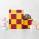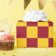 Arte abstrato digital de burgundy e quadrados de ouro em formação controlada.