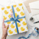 Você está planejando um banho de bolha ou um chá de fraldas temático de pato? O embrulho de presentes de borracha amarela projetado pela Enchantfancy Design Company é uma escolha adorável para chás de fraldas neutros em relação ao gênero. Este papel de embrulho ajudará a adicionar esse toque especial aos seus presentes e favoritos para festas. Não se esqueça de juntar o tema da festa de pato com a coordenação de produtos projetados pela Enchantfancy Design Company.