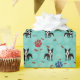 Um cachorro de Boston Terrier com uma dispersão de ossos e trilhas de pata. Este design é destinado ao azulejo sem falhas.