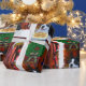 O filhote de Boston Terrier bonito está esperando a chegada de Papai Noel na véspera de Natal.