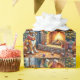 Papel De Presente Boxer Sitting by Fireplace with Christmas Lights
