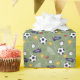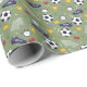 This sporty wrapping paper features a fun green background with a pattern of soccer balls, trophies, and stars. Perfect for birthday gifts, party favors, or any celebration for a football-loving kid!