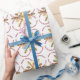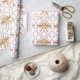 Bonito chic tradicional, elegante, branco e ouro, padrão moderno de floco de neve, design com texto personalizável de Feliz Natal e seu nome de família personalizado. Personalize facilmente este texto de Feliz Natal com seu próprio nome familiar ou qualquer outro texto para uma reunião especial personalizada de família no feriado ou ocasião de inverno, você também pode personalizar o fundo branco puro de fundo a partir de uma faixa de mais de 200 cores. Sua família apreciará este papel de embrulho com formato de nome personalizado especial neste Natal. NOTE que a cor do ouro não é metálica.