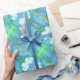 Papel De Presente Branco artístico do verde azul de teste padrão de