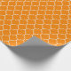 Um papel de envolvimento construído com um teste padrão marroquino do quatrefoil em tamanho grande, branco na laranja. Personalize o fundo alaranjado em uma forma facil.