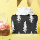 Dê um pouco de alegria de feriado no estilo moderno com este design branco e preto desenhado pela mão. Apresenta um padrão repetido de pinheiros brancos carregados de neve em um fundo preto. Limpo, simples e perfeito para suas mensagens de Natal.