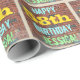Esta divertida design de papel embrulhado com tema de aniversário apresenta uma mensagem como "FELIZ 58º ANIVERSÁRIO, JESSICA!", onde o nome pode ser personalizado. O fundo apresenta uma representação de uma parede de tijolos constituída por alguns tijolos de cor castanha avermelhada. O texto de mensagem personalizável apresenta cores como azul, amarelo e verde, e tem uma aparência inspirada pela do grafite pintado. Um papel de embrulho como este poderia talvez ser usado para embrulhar presentes de aniversário que são dados a alguém que está celebrando seus cinquenta e oito anos. [~Z0000274]