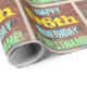 Este divertido design de papel de embrulho com tema de aniversário apresenta uma mensagem como "FELIZ 96º ANIVERSÁRIO, FIRSTNAME!", onde o nome pode ser personalizado. O fundo apresenta uma representação de uma parede de tijolos constituída por alguns tijolos de cor castanha avermelhada. O texto de mensagem personalizável apresenta cores como azul, amarelo e verde, e tem uma aparência inspirada pela do grafite pintado. Um papel de embrulho como este poderia talvez ser usado para embrulhar presentes de aniversário que são dados a alguém que comemora seu 90° aniversário. [~Z0000274]
