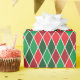 This fun geometric pattern, a traditional harlequin arrangement of diamond shapes, is colored in a bright Christmas theme with two shades each of green and red.