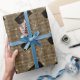 Um papel de embrulho elegante e luxuoso com espaço para texto personalizado em quadro clássico de arte deco gold. O design é um padrão de sequências douradas a preto com alguns faíscas de realce. (o produto não apresenta brilho ou brilho). Adicione um nome e crie uma maneira elegante de dar presentes personalizados com esse empacotamento.