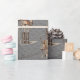Papel de enrolamento em bronze Dourado de Cinzas de Aço Nutcracker Um rico fundo de cinzas de aço cheio de piratas de bronze com o Script "Noz-de-Natal, simples e elegante. Presentes de Natal com aula