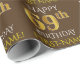 Este design de papel de embrulho apresenta uma mensagem como "FELIZ 69º ANIVERSÁRIO", com o "69º" a ter uma aparência falsa/imitação de ouro. Ele também apresenta um nome personalizável e um fundo castanho. Talvez possa ser utilizado quando se dá presentes para o sexagésimo nono aniversário de alguém. [~Z0000133]