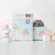 Papel De Presente Brunette Princess e Unicorn Rainbow Birthday