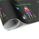 Este papel colorido de embrulho apresenta um tema do Dia das Bruxas sobre um fundo preto. Uma bruxa bonito com cabelo laranja está ao lado do caldeirão borbulhante. Uma pequena aranha está descansando em sua teia sobre a bruxa. A saudação de Feliz Dia das Bruxas é colocada acima da ilustração e um nome de família de amostras é impresso abaixo. Você pode personalizar o papel de empacotamento para incluir seu próprio nome personalizado ou texto.