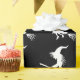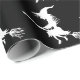 Uma bruxa assustadora voando sobre uma vassoura acentua este papel de embrulho, fazer perfeito para um presente de Halloween.