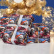 Um francês famoso veste um boné vermelho enquanto as luzes de Natal brilham ao fundo.