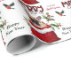 O padrão repetido neste belo papel de embrulho de Natal é uma imagem de um adorável Bulldog Francês a espreitar de um saco de presentes de Natal vermelho e branco. Atrás dele está um sorvedouro de bagas sagradas e vermelhas. Um pássaro toucinho vermelho e preto está prestes a pousar. O texto da xadrez de búfalos vermelho e preto estilizado diz MERRY CHRISTMAS", e "Feliz ano novo" está em verde-escuro. Sua própria assinatura está em dois campos para você personalizar. Certifique-se de ver as etiquetas de presentes correspondentes.