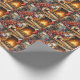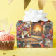 Papel De Presente Bulldog Sitting by Fireplace with Christmas Lights