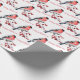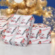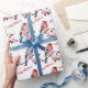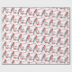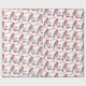 Um papel de embrulho de Natal feliz com uma redação personalizável que apresenta um pássaro de Natal Eurasiático pintado a aquarelas em um galho de neve que se banha em groselhas vermelhas cantando, "Feliz Natal", em um lindo roteiro escrito à mão sobre um fundo branco.