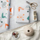 Este papel de embrulho tem um design atômico moderno do século médio de formas de bumerangue, antenas e estereótipos em cor de laranja.