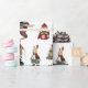 Bonitos com presentes de Natal, trenós, mitenes e árvores de Natal em fundo branco.