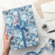 Uma paisagem com neve aquarela está sob uma lua de cheio com um coelho branco no primeiro plano olhando para cima em uma coruja de neve
